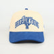 - Monochrome blue Brigham Young embroidery on the crown