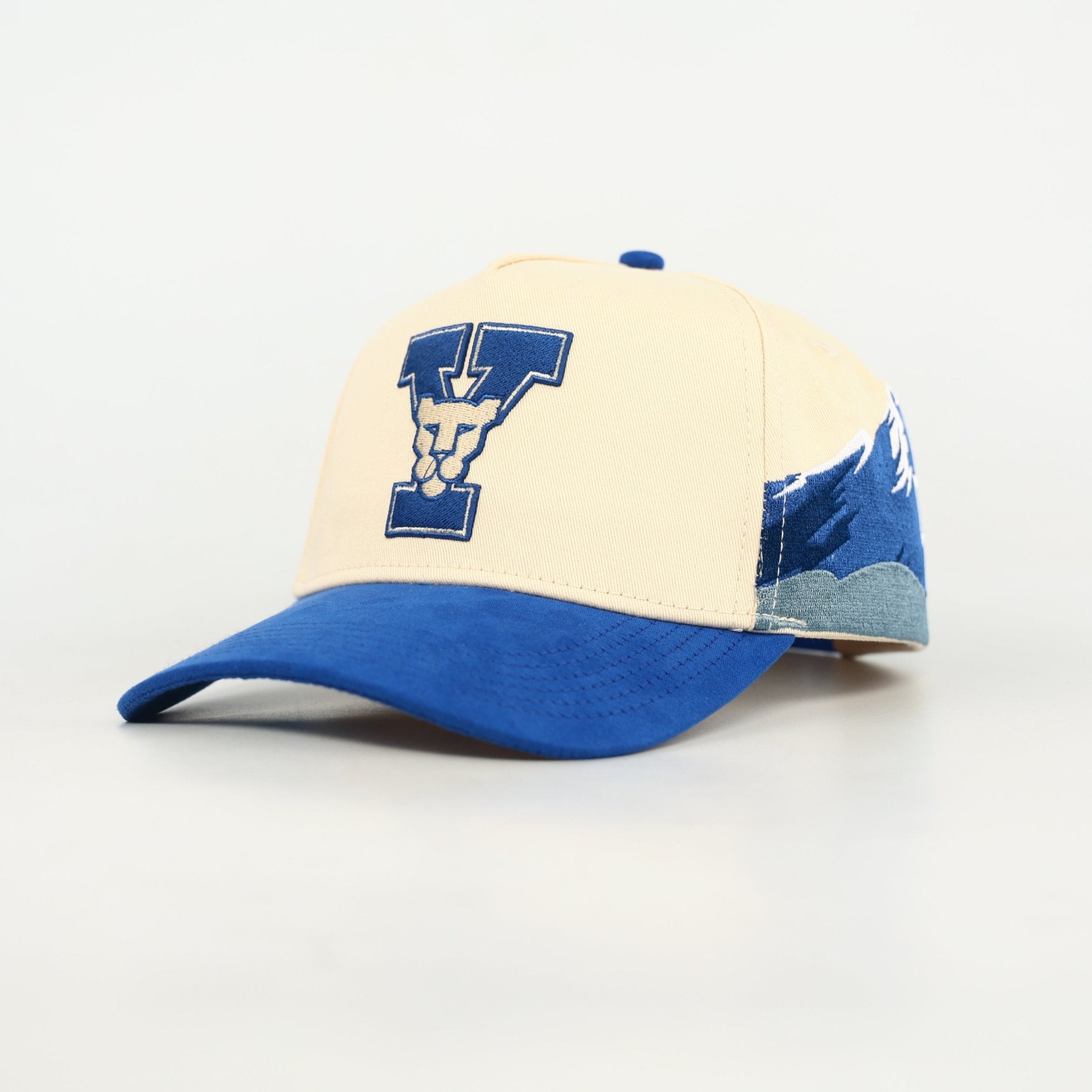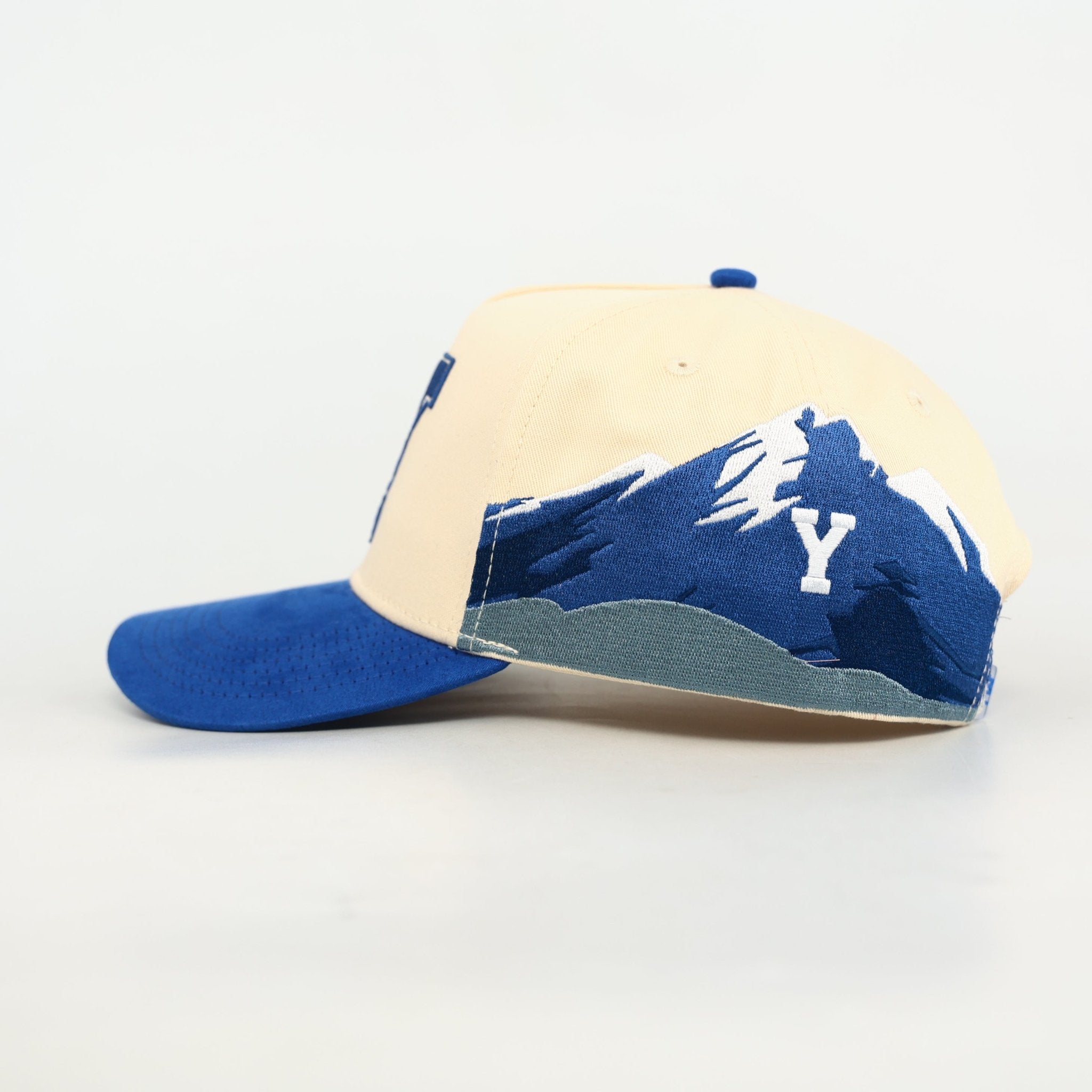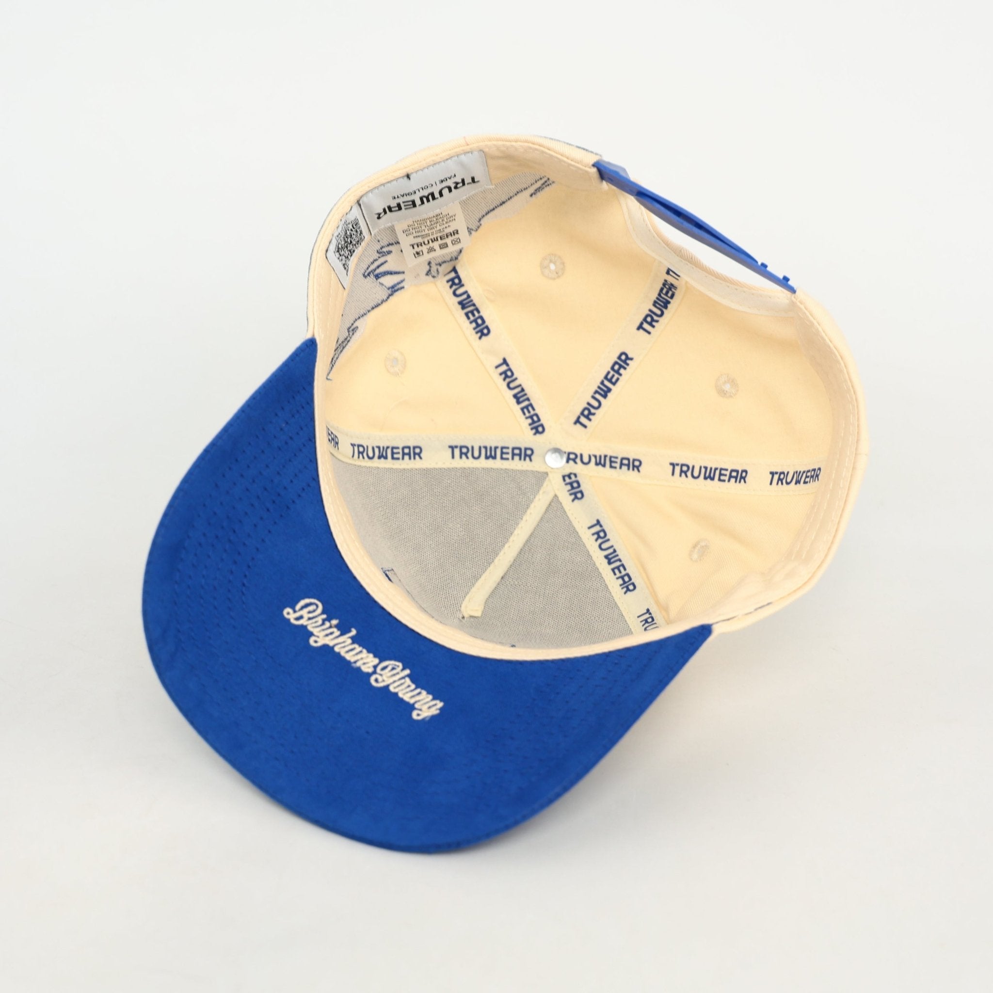 The Y Natural & Royal Blue Suede Brim Mountainside Hat is all about thoughtful details and classic BYU pride. The natural crown keeps it clean, while the royal blue suede brim adds a premium touch. Front and center, a royal blue Y paired with a grey cougar head sets the tone — simple, strong, and unmistakably BYU.