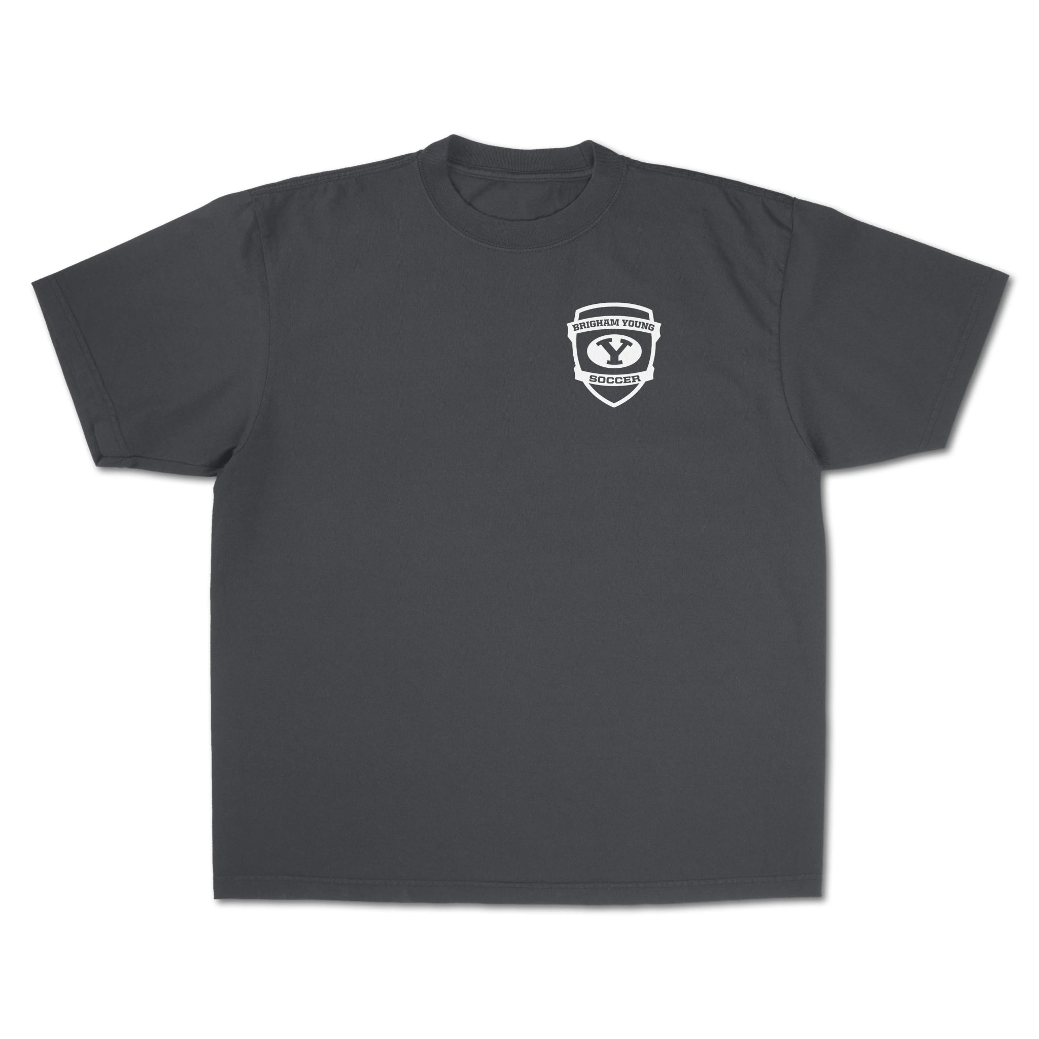 Made from premium pre-washed dark grey cotton, it offers a soft, vintage feel and relaxed oversized fit for all-day comfort. The bold back graphic highlights BYU’s South Field, while the front BYU Women’s Soccer crest keeps the front design classic and minimal.