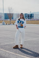 The Saturday Football Club graphic tee is made on 100% cotton tees. Kid sizes are available in the black and white tees, made on comfort colors tees. Adult sizes are available in black, white and royal blue from small to 3XL. The black and white tees are also made on comfort colors tees, while the royal blue (adult sizes only) are made on the heavyweight %100 cotton Shakawear tees.