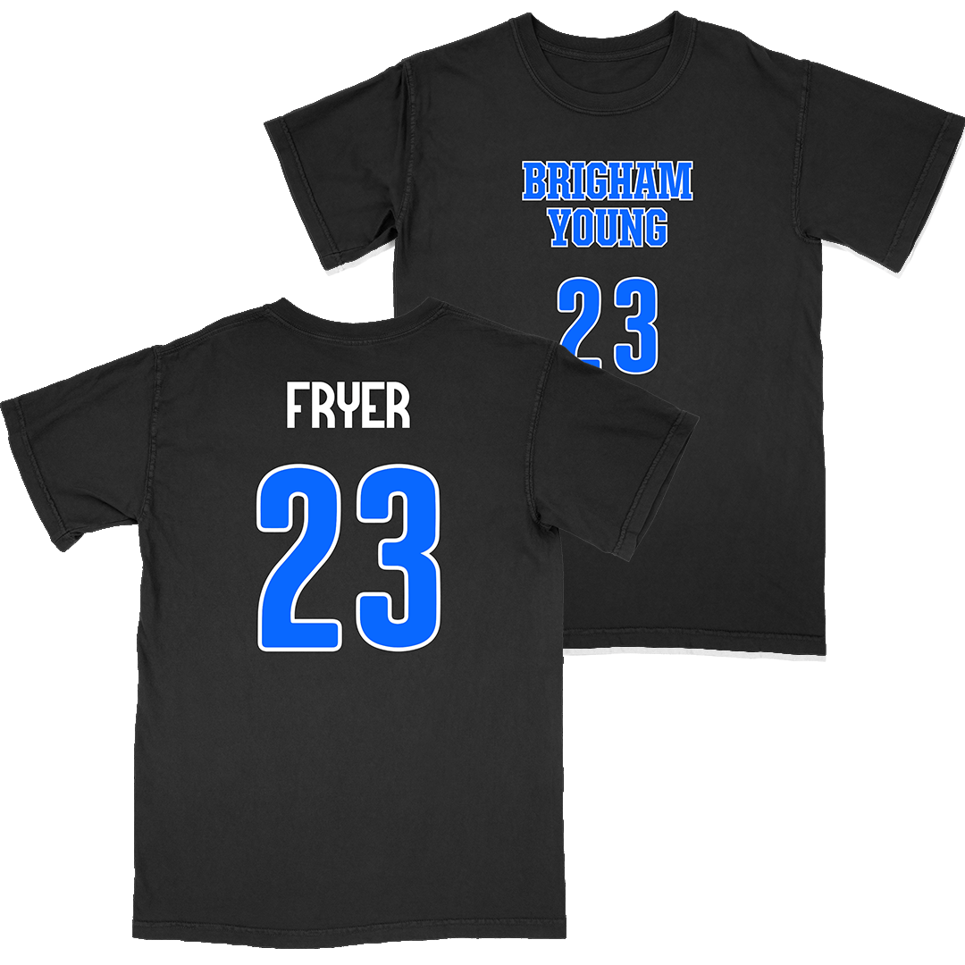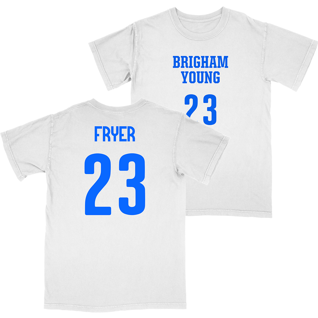 Show your Cougar pride and celebrate one of BYUâs standouts with the Allie Fryer Womenâs Soccer Jersey Tee. Designed for fans who want to rep their favorite player in comfort and style, this tee combines the look of a jersey with the ease of everyday wear. The front features a bold âBrigham Youngâ chest print, while the back showcases Fryerâs name and number in the authentic BYU font style.