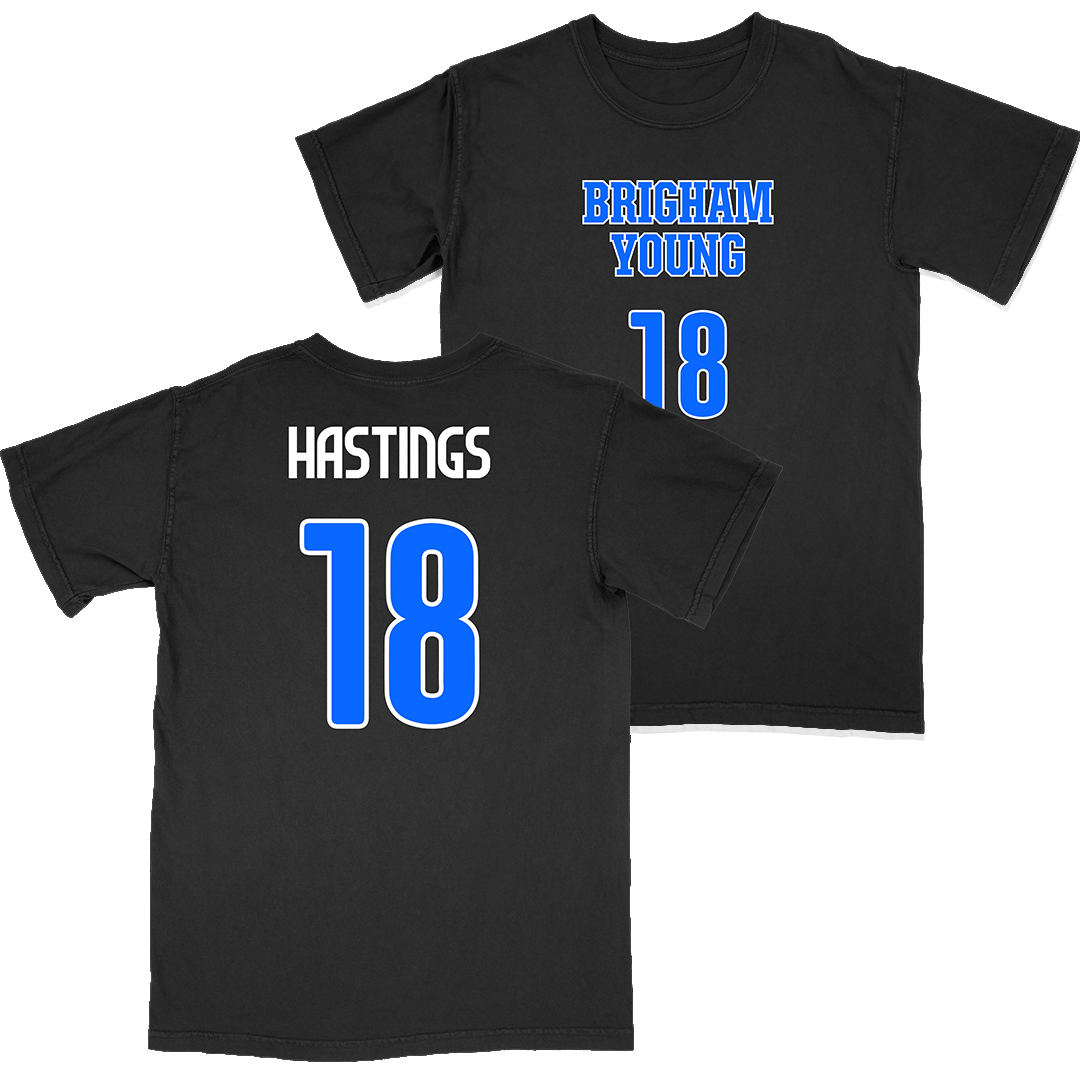 Show your Cougar pride and celebrate one of BYUâs standouts with the Kyleigh Hastings Womenâs Soccer Jersey Tee. Designed for fans who want to rep their favorite player in comfort and style, this tee combines the look of a jersey with the ease of everyday wear. The front features a bold âBrigham Youngâ chest print, while the back showcases Hastingsâs name and number in the authentic BYU font style.