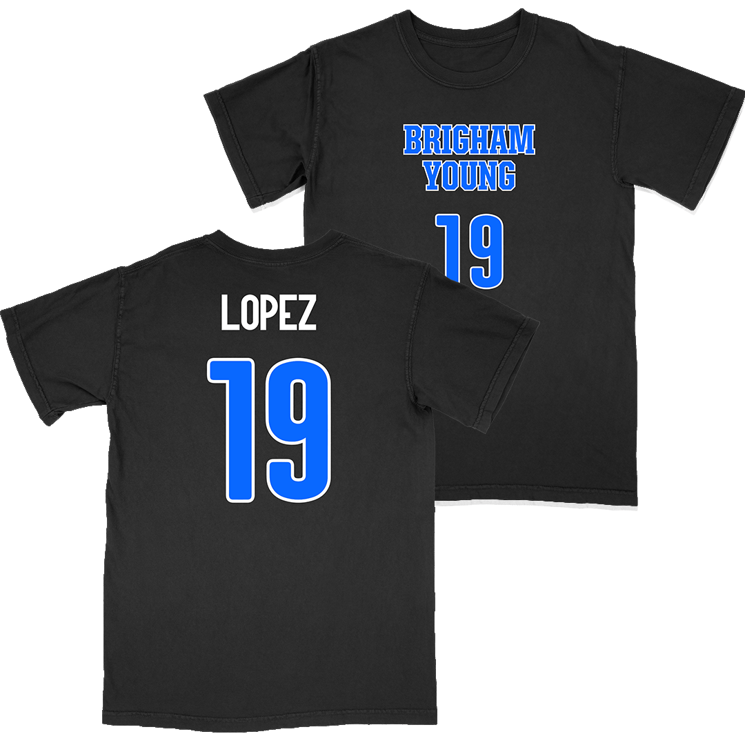 Show your Cougar pride and celebrate one of BYUâs standouts with the Mia Lopez Womenâs Soccer Jersey Tee. Designed for fans who want to rep their favorite player in comfort and style, this tee combines the look of a jersey with the ease of everyday wear. The front features a bold âBrigham Youngâ chest print, while the back showcases Lopezâs name and number in the authentic BYU font style.