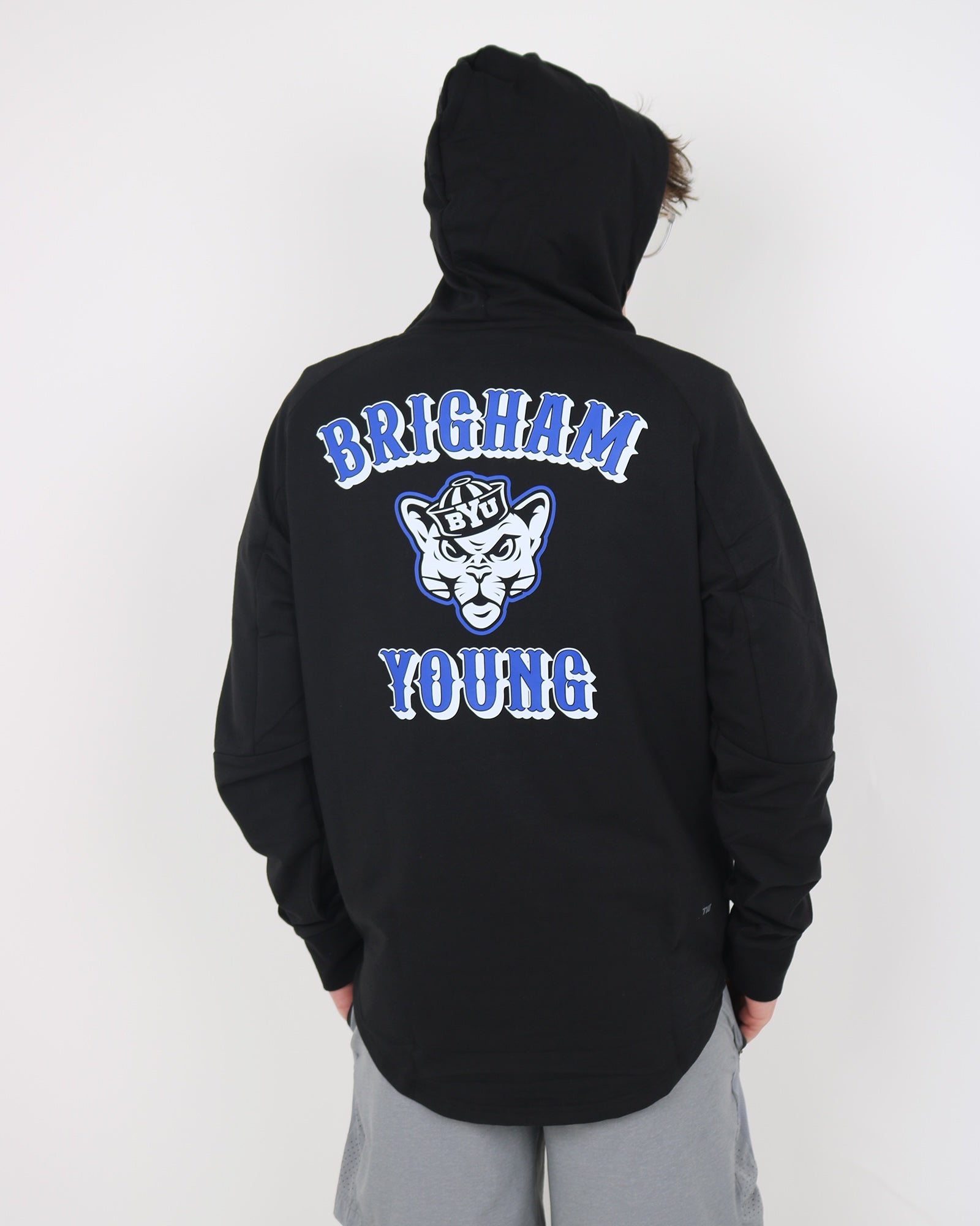 The hoodie that changes the game. The Classic Cosmo Scuba Hoodie blends modern style with unmatched performance. Its raised neckline and scalloped hem bring a sleek, elevated edge, while the stretchy, breathable fabric moves with you. Perfect for the gym, casual Fridays, or wherever Cougar pride takes you.
