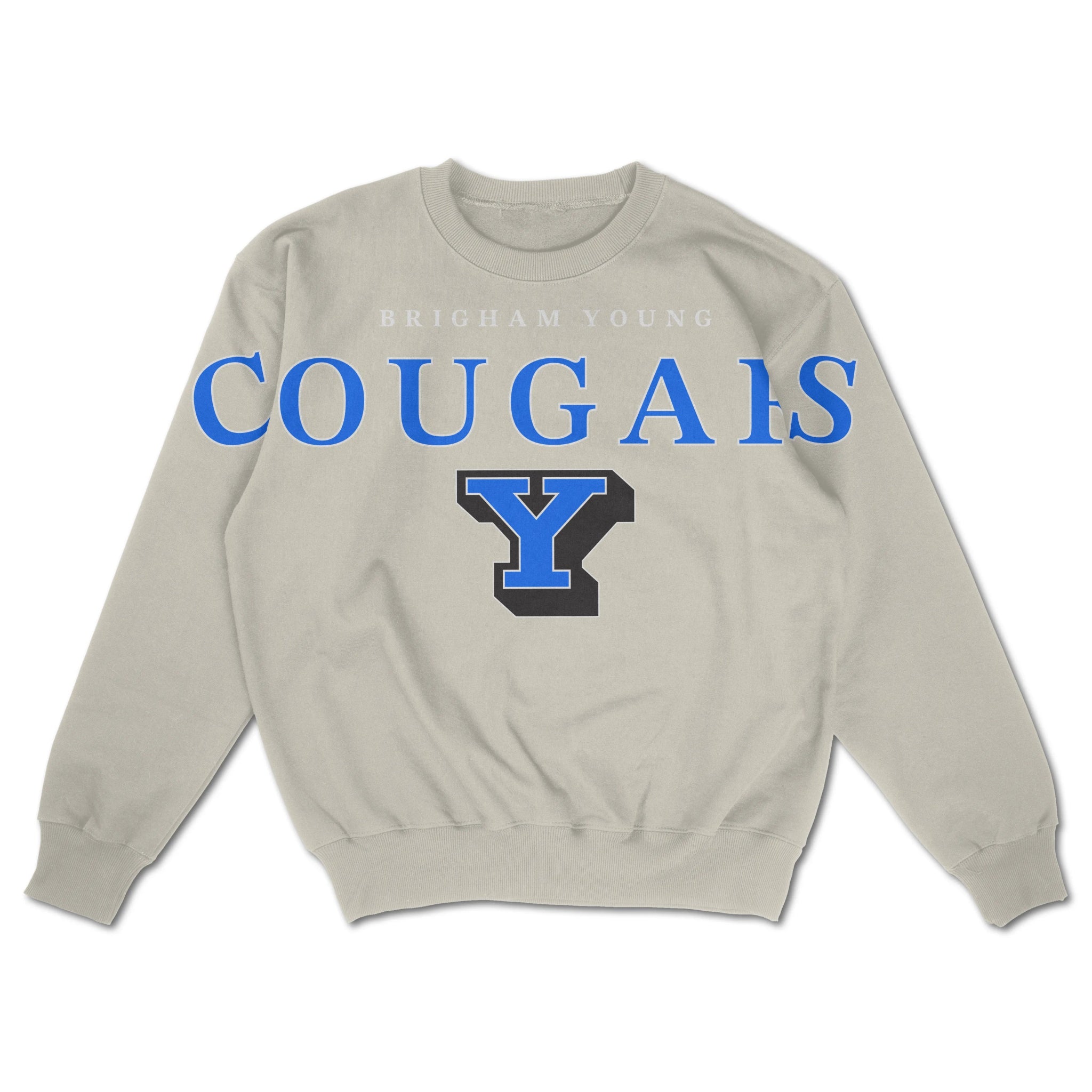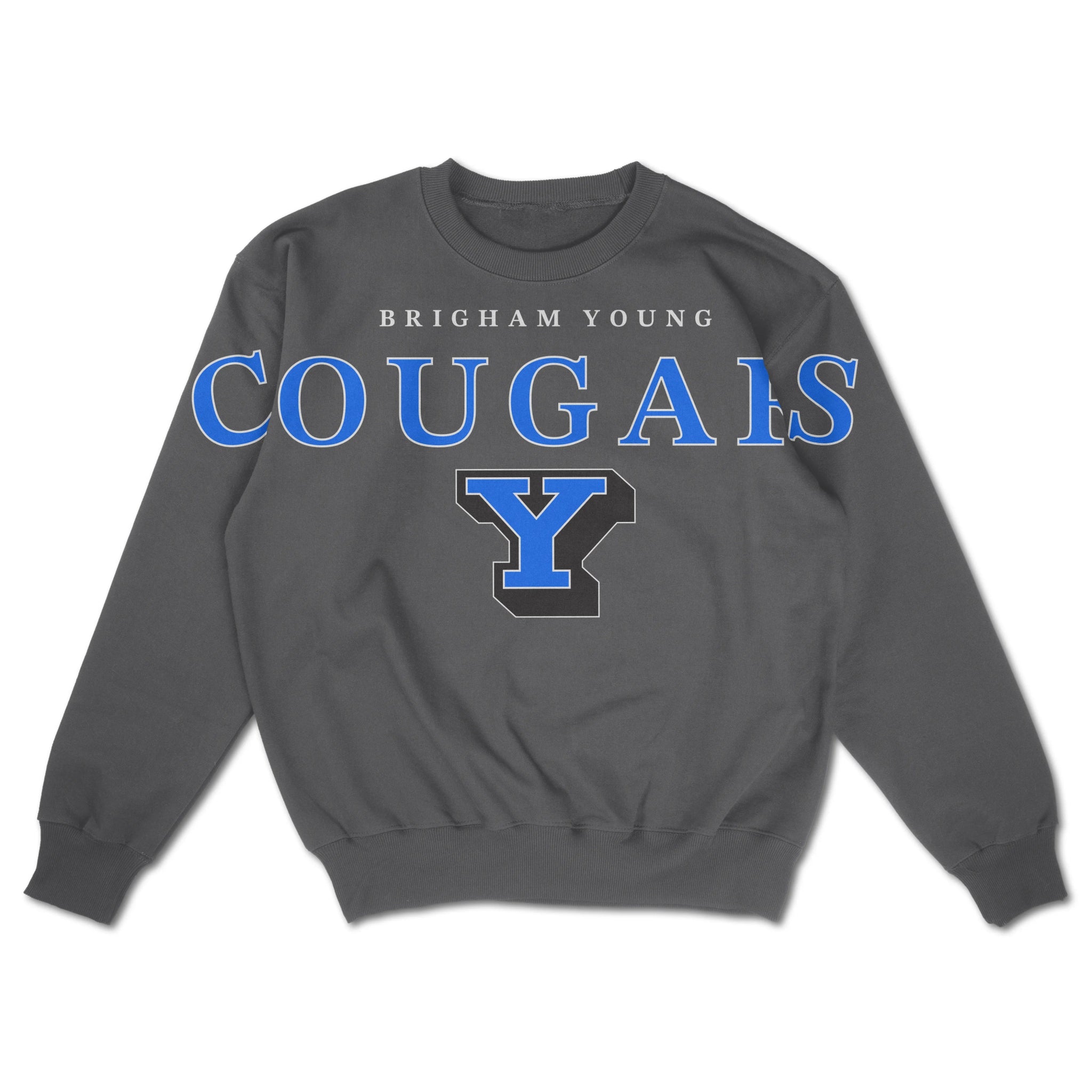 This isn’t just another sweatshirt—it’s a bold tribute to BYU heritage. Featuring oversized "COUGARS" lettering and the iconic block Y in royal blue, this vintage-inspired crew brings classic college style into the modern day.