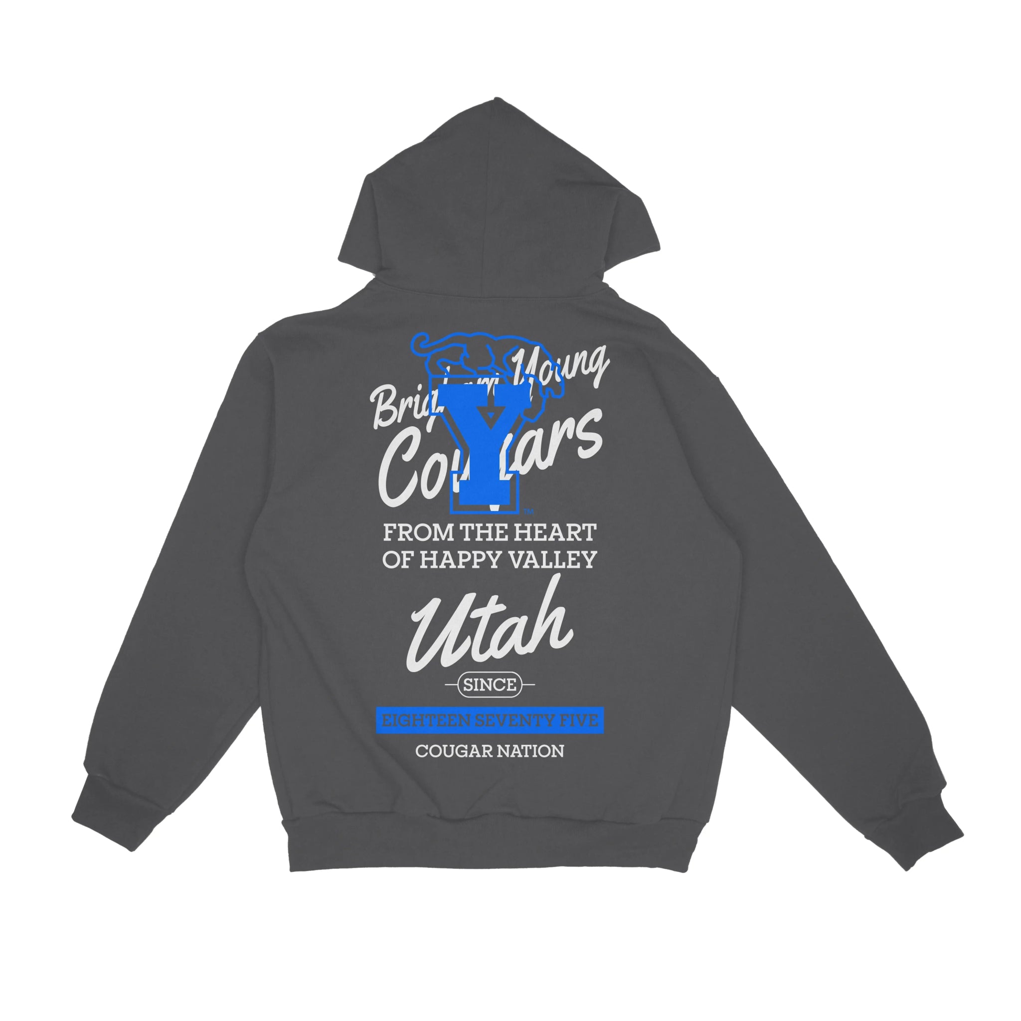 Rep your roots and your team with the Hometown Pullover Hoodie — a staple piece that blends Cougar pride with everyday comfort. Crafted from premium heavyweight fleece, this hoodie delivers a soft, cozy feel built to handle game days, late nights, and everything in between. The classic athletic fit and bold front graphic make it a true statement for every BYU fan, while subtle design details nod to the spirit of Provo and the legacy of Cougar Nation.